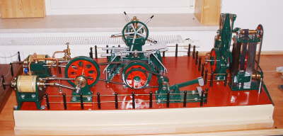 Die gesamte Anlage besteht aus einer liegenden Zwillings-Dampfmaschine, einer Balacier-Dampfmaschine, einem Schwanzhammer, einem Fallhammer und dem Blockwalzwerk