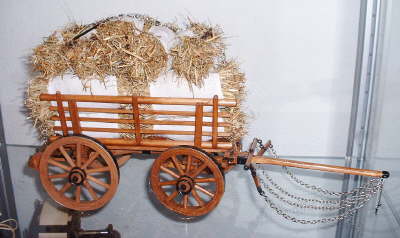 Zweispänniger Wagen mit Heubündeln gebunden in Heutüchern
