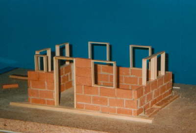 Hier entsteht ein kleines Fachwerkhaus im Maßstab 1:25 (Spur 1).